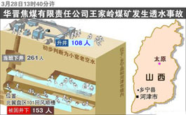 ![]() 2010年3月28日13時40分左右,王家?guī)X礦北翼盤區(qū)101回風順槽發(fā)生透水事故,事故發(fā)生時當班下井261人,升井108人,有153人被困井下。事故初步判斷為小窯老空水。 ![]() 王家?guī)X煤礦是國家和山西省“十一五”規(guī)劃重點建設項目,井田位于山西省鄉(xiāng)寧縣和河津市境內,可采儲量10.36億噸。礦井原將于10月份投入運營,提前5個月完成工期。