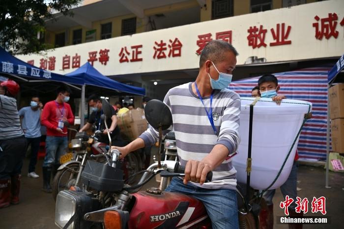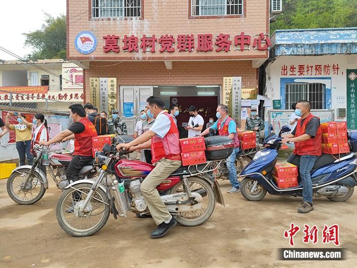 村民自發使用摩托車運送救援物資