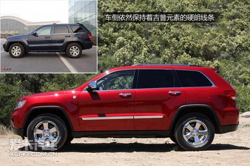 2011款大切諾基在外形設計上完全和上一代車型的樣子截然不同,車前部看上去更加兇悍。而車身側面的線條則與現款大切諾基近乎相同,當然任何人一眼看過去都會認為新一代車型會更加順眼。