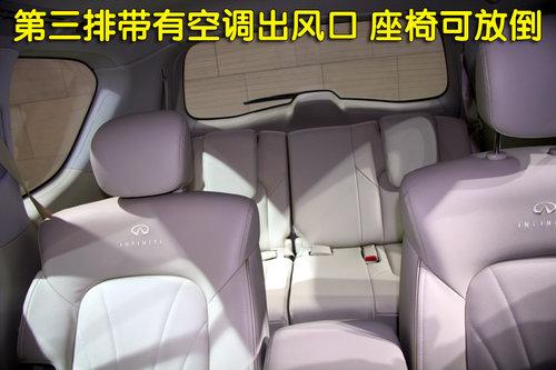 接下來(lái)我們就要說(shuō)到第三排座椅了,也許這里的使用次數(shù)并不會(huì)很多,但是英菲尼迪同樣為第三排乘客提供了空調(diào)出風(fēng)口,大大提高了舒適度,如果有人故意將我擠到最后面的話,我想我還是可以接受的。如果當(dāng)你需要更大的空間作為儲(chǔ)物用途時(shí),第三排座椅可以進(jìn)行4/6拆分放倒,這一點(diǎn)你要相信它的實(shí)力。總之如果你需要一些個(gè)性,又想兼顧品質(zhì)與豪華舒適,這款英菲尼迪全新QX56應(yīng)該會(huì)很貼合你的想法。