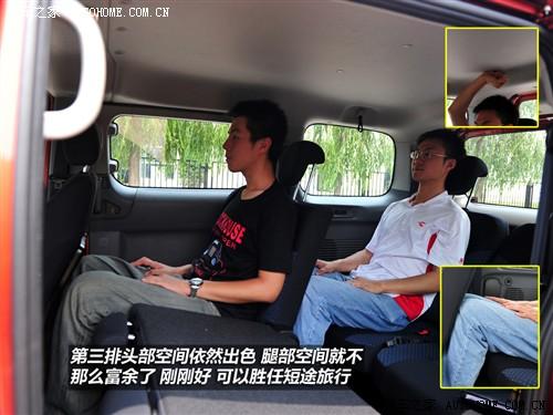 本車的體驗者身高為188cm,但坐在NV200的前兩排頭部仍然有一拳的余量,車身較高確實是廂式車的一大優點。而且和之前介紹的兩款車型不同,NV200的第三排座椅可以乘坐一名成年男性,雖然也不寬裕但可以進行短途的乘坐。