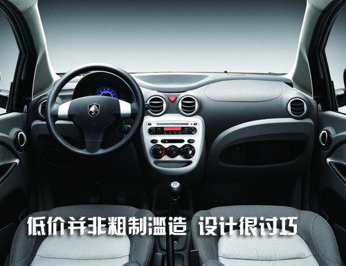 奔奔mini的中控臺(tái)設(shè)計(jì)與前兩款車(chē)型有所不同,與前者相比面積利用率更大,各部件的擺放位置也更合理耐看。中控臺(tái)面板為一微微凸出平面,輔以銀色涂裝,具有上佳的人機(jī)工程學(xué)設(shè)計(jì);空調(diào)出風(fēng)口是四個(gè)可完全關(guān)閉的原型狀;副駕駛前方手套箱由抽屜式變成開(kāi)放式;門(mén)壁板手枕加寬,更便于使用。