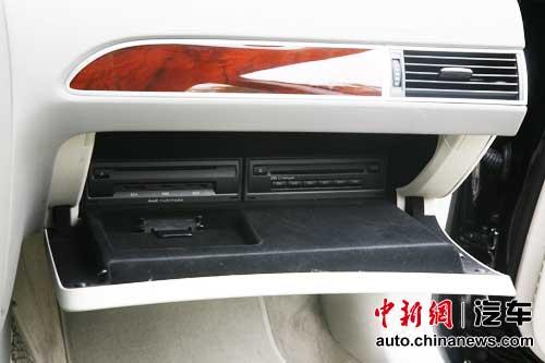 副駕駛的手套箱要按動中控面板上的按鈕來開啟。6碟CD、SD卡插槽、用在車載電話上的SIM卡插槽,以及DVD系統都在這里了。只是這樣一來,這個手套箱也就真的只能放手套用了……