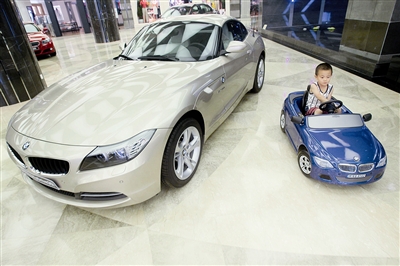 今天上午,翠微廣場一層寶馬生活館內,兩輛兒童電動車被擺在店鋪中最顯著的位置,吸引了眾多顧客的眼球。