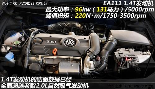 1.4T這套動力總成在高爾夫6、速騰、明銳等車型上都已出現,發動機最大功率96kw(131馬力)/5000rpm,峰值扭矩220N·m/1750-3500rpm,賬面成績已經全面超越老款2.0L發動機。同時干式七速雙離合變速箱在加速性能、日常駕駛平順性、燃油經濟性方面也直接秒殺原來的5速手動、6速自動變速箱。當然進步往往是需要代價的,比如后期的保養、維修費用要高出原先的組合。