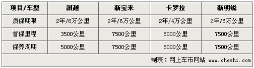 選擇的四款車型都是市場上相對銷量比較靠前的熱門車型,新凱越是別克旗下的緊湊級家用車,質(zhì)保期為2年/6萬公里,一個(gè)合資車比較常規(guī)質(zhì)保期限。同為2年/6萬公里還有一汽大眾品牌的新寶來,以及上海大眾斯柯達(dá)的新明銳。豐田卡羅拉是四款車型中唯一一款日系車型,2年/4萬公里的質(zhì)保期比較起來少有遜色。