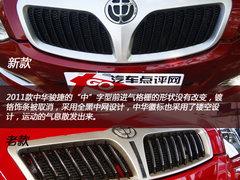 2011款中華駿捷的外觀變化不少:中網內的鍍鉻飾條被取消,采用全黑中網設計,中華徽標也采用了鏤空設計;前大燈增加了車燈邊框裝飾條和LED行車燈;霧燈變化最大,多邊形霧燈底框增加了鍍鉻裝飾增加了些許兇狠的味道。整體看上去更有運動感與沖擊力。