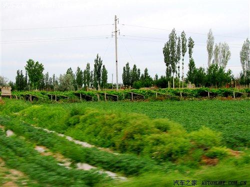 經過了半個小時的行程后,我們離開了市區,隨之進入我們眼瞼的是一些土房子和哈蜜瓜地,當地的農民一大清早已經在忙著農活,沒有他們的辛勤勞動,我相信你們來到新疆不會看到那一望無際的哈蜜瓜地和葡萄田。