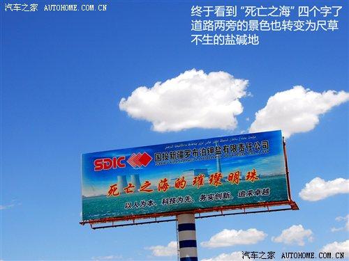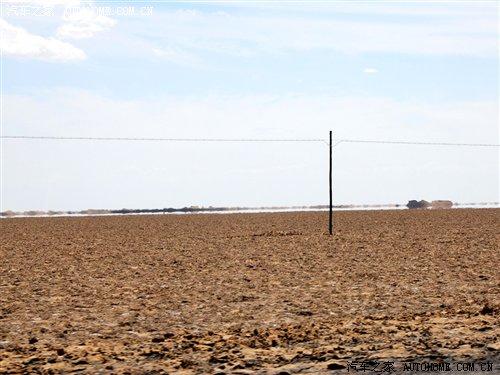 期待了數(shù)天的“死亡之海”、羅布泊等字眼終于映入眼瞼,一個(gè)醒目的廣告牌就樹立在路旁。此時(shí)我們離羅布泊的距離也只有100多公里了,兩旁的景物像女人一樣,說(shuō)變就變了,沙漠已經(jīng)被一望無(wú)際的鹽堿地所取代。