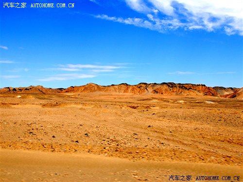 離開雅丹地貌后,我們的車隊(duì)繼續(xù)進(jìn)發(fā),大約兩個(gè)小時(shí)的車程后景色有了較大的變化,公路兩旁是被陽(yáng)光曬得閃閃發(fā)光的沙漠,還有就是藍(lán)藍(lán)的天空,此時(shí)已經(jīng)是下午的1點(diǎn)15分了,看來(lái)我們的目的地離我們不遠(yuǎn)了。