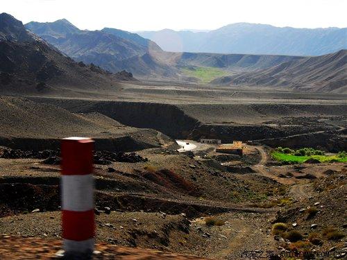 車隊(duì)繼續(xù)前行,市區(qū)離我們?cè)絹碓竭h(yuǎn),在后視鏡里面僅剩下一個(gè)小圓點(diǎn)。我們即將進(jìn)入軍馬場(chǎng),也就是山區(qū)道路。由于進(jìn)入山區(qū)后溫度相對(duì)來說比較低,因此這個(gè)時(shí)候添加衣服很有必要。除了添加衣服外,駕駛也得小心翼翼,因?yàn)樯铰范急容^迂回曲折,最主要是數(shù)十噸的運(yùn)貨拖車特別多,在途中我們就遇上了一臺(tái)在下山時(shí)候翻倒在山邊的貨車。