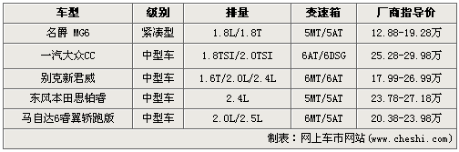 在國內(nèi)汽車市場中,最先開創(chuàng)轎跑車概念是馬自達6轎跑版,它的引進過程讓國人第一次感受到了4門轎跑車的獨特魅力,同時也得到了很好的市場反應。在之后的一段時間中,合資汽車廠商紛紛推出類似車型,例如別克換代新君威、東風本田思鉑銳、以及剛剛上市的大眾CC。除此以外,自主企業(yè)上海汽車名爵品牌也推出了MG6車型,雖然定位為緊湊級別車型,但4門掀背的設計讓、2705mm的長軸距它也理所當然的被列入了轎跑車的行列。
