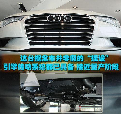 通常來展示在站臺上的概念車大都只是一個空殼子而已,出于好奇心我也趴到車底一看究竟。事實上這臺概念車已經被裝上了動力系統(tǒng)和懸架系統(tǒng),加滿油、啟動引擎就可以開動。可惜的是現在它只能乖乖的趴在展廳里。動力系統(tǒng)上歐洲市場會搭載與全新A8或是Q7相同的柴油引擎以及汽油引擎。