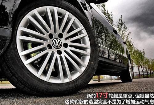 2011款邁騰在外觀上沒有太顯眼的變化,不過一眼看過去你總覺得它變得更動感了。為什么呢?原來邁騰更換了“大腳”,全新的235/45 R17輪胎搭配多幅條運動輪轂明顯增強了邁騰的運動感,也使自己在致勝、君威面前不再顯得那么寒酸。