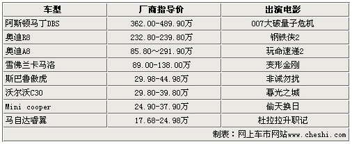 以上8款電影用車都是我們比較熟悉的,從溫馨的愛情片,到緊張的動作片,甚至是虛無縹緲的科幻片,都有它們的參與。汽車已經不僅僅是我們生活中的交通工具了,很多時候,我們可以通過電影來表現出它們的生命,并且已經逐漸成為我們生活中的重要組成部分。