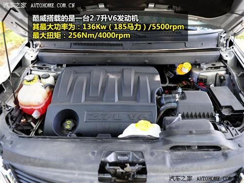 當(dāng)前在售的酷威只有一款車型, 廠商指導(dǎo)價為29.99萬,它采用排量為2.7升的V6發(fā)動機(jī),最大功率為185馬力,對大扭矩為256牛米,推動這款重量超過1.7噸的車型基本夠用,與之搭配的是6速手自一體變速箱。在配置方面,它具有胎壓監(jiān)測、DVD娛樂系統(tǒng)、分區(qū)自動空調(diào)等諸多裝備,足夠日常使用,讓人略有擔(dān)心的是美國車較高的油耗。