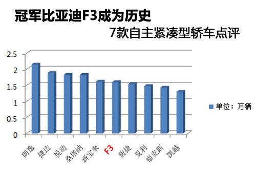 比亞迪F3,比亞迪旗下最為成功的車型,并且穩(wěn)居榜首很長時(shí)間,但是就像開始說的,僅僅一個月的時(shí)差,讓這款一直穩(wěn)居國內(nèi)緊湊型轎車榜首的車型突然下滑至第六,畢竟就算下滑,跌落個一兩名的位置還情有可原,但是在其它大多數(shù)品牌并沒有太大的銷量提升的情況下就出現(xiàn)如此狀況,這又說明了什么呢?