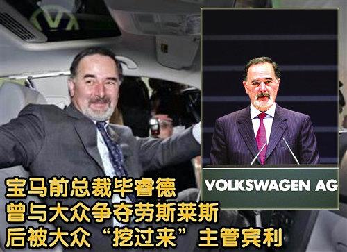 1998年6月,寶馬公司在爭(zhēng)購(gòu)勞斯萊斯汽車公司的投標(biāo)中敗給了大眾公司。7月28日,寶馬公司花4000萬(wàn)英鎊購(gòu)買了勞斯萊斯的商標(biāo)和標(biāo)志,并與大眾簽署了一項(xiàng)協(xié)議,約定寶馬從2003年起開(kāi)始生產(chǎn)勞斯萊斯牌轎車,而大眾則從2003年起仍舊在克魯廠房生產(chǎn)賓利豪華轎車。這樣賓利就正式收歸大眾旗下,這其中有個(gè)戲劇性的小插曲:曾經(jīng)是寶馬總裁畢睿德在任時(shí)曾經(jīng)與大眾爭(zhēng)奪勞斯萊斯,后來(lái)因?yàn)榉N種原因被大眾挖走,主管賓利!