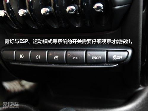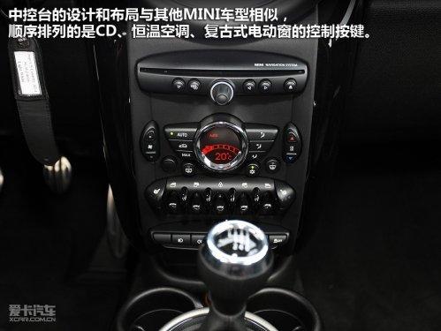 中控臺的設(shè)計(jì)和布局與其他MINI車型相似,從上而下順序排列的是CD、恒溫空調(diào)、復(fù)古式電動窗的控制按鍵,最下面一排的位置則有些別扭,霧燈與ESP、運(yùn)動模式等系統(tǒng)的開關(guān)需要仔細(xì)觀察才能按準(zhǔn)。