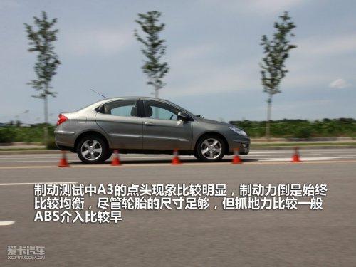 在0-100公里時速加速測試中,A3的避震系統有些拉不住,車頭抬升的比較明顯,205的瑪吉斯輪胎也不能提供足夠的抓地力,起跑的不利對成績應該會有些影響。其實A3的新發動機動力輸出很線性,這也是自主品牌廠商一直都青睞的調教方式,所以你無法從中找到強烈的爆發點。最終的成績也是中規中矩的,12.4秒的成績比之前的老款發動機已經有了明顯提升。