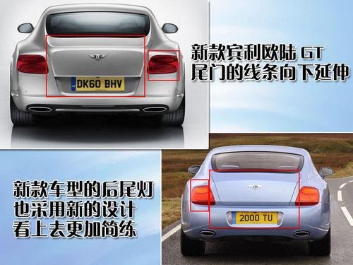 2012款賓利歐陸GT的尾部設計也比老款有很大改進,尾門突出的線條一直延伸到底部保險杠的位置,而且尾部保險杠采用平行線條設計,與老款斜式線條設計有很大區別。另外,2012款賓利歐陸GT的后尾燈造型更加純粹,突出這款車簡約的設計風格。