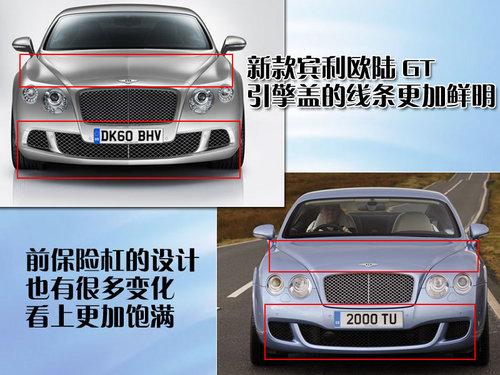 2012款賓利歐陸GT與老款車型相比,外形的整體風格并沒有太大的變化,但這款新車在很多細節方面都進行了改進,看上去比老款車型更加動感時尚。從車頭的照片可以看的出來,2012款賓利歐陸GT的引擎蓋采用了更多的線條勾勒,而且前保險杠的造型也有細微的變化,看上去更加飽滿。