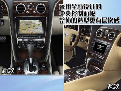 2012款賓利歐陸GT的方向盤采用全新的設計,并沒有采用老款實木材質方向盤。同時,新款車型的方向盤看上去更富科技感,主要體現在更改的多功能按鍵和三幅式設計。另外,2012款賓利歐陸GT的中央控制面板也有很大變化,雖然出風口的位置和時鐘沒有實木變化,但音響功能區和空調控制區經過整合更有層次感,而且還節約出一些儲物空間。