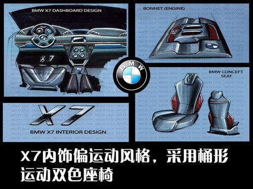 寶馬X7預計車重將超過3噸,同等級的競爭對手奔馳GL550整備質量僅為2.5噸不到。如此看來GL級在寶馬X7面前也算是小弟了。據稱寶馬X7會融合X5和7系的多項設計元素,將X5的高性能越野能力和7系的豪華裝備完美結合。X7內部空間會設置三排座椅,保證所有乘客都擁有極好的舒適性,而不是市面上一些SUV所謂的“假三排”。它的行李廂也是一大亮點,容積可能達到3000升左右,奔馳GL550的這一數據是2300升。