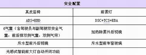 安全配置方面,新車將搭載ABS+EBD、DSC+TCS+EBA、前霧燈、6安全氣囊、斥水型前外后視鏡(可加熱除霧)/車窗玻璃、帶自動(dòng)開閉功能的光感式智能大燈。