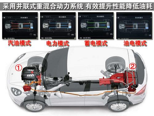 混合動力驅動裝置的最大優勢在于有效降低油耗的同時,又可以保證動力方面不會受到太大的損傷,卡宴混動版采用了并聯式重混合動力系統。在車輛行駛中,通過車速與油門、剎車的不同配合,共有4種輸出模式,分別為:汽油、電力、蓄電和油電混合輸出。