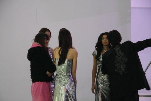 接下來看到的是標(biāo)致展臺(tái),模特已經(jīng)嚴(yán)陣以待,進(jìn)入了彩排階段,正式服裝已經(jīng)上身,黑色的套裙裝體現(xiàn)性感的一面。美女們站一排,有點(diǎn)眼花繚亂啊。