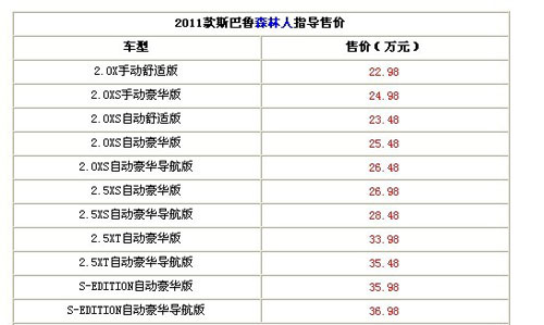 中新網12月20日電 今日,斯巴魯在廣州車展上正式推出了2011款森林人,此次上市新車共有11款車型,價格區間為22.98萬元-36.98萬元。斯巴魯在本次車展上展出了其中的Forester森林人2.5XS自動豪華版和Forester森林人S-EDITION自動豪華版。