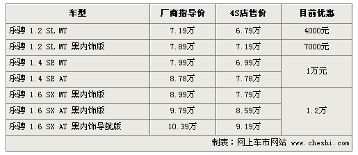 新樂騁最高優惠1.2萬元 最低僅售6.8萬