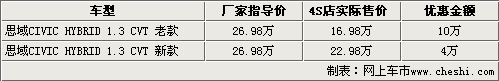 作為東風本田以整車進口形式引入國內(nèi)銷售的思域混動力車型,自上市以來銷量的逐年遞增并獲得了良好的市場反響,而它的繼任者新款思域混動力也于今年6月份正式上市銷售。近日根據(jù)網(wǎng)上車市價格檢測系統(tǒng)顯示,本田混合動力思域出現(xiàn)了大幅優(yōu)惠,新款車型優(yōu)惠4萬元,老款車型優(yōu)惠幅度更是達到了10萬元。具體車型售價見下表: