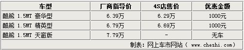 據長城汽車4S店銷售人員介紹,長城酷熊豪華型和精英型都已經有大部分顏色的現車到店,消費者可以到店提現車。但酷熊天窗版由于廠家并沒有投產,導致沒有現車,而且也不能接受預訂。另外,銷售人員表示,目前購買酷熊車型可給出千元的現金優惠,對于消費者而言無疑是一個好消息。