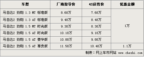 筆者從長安馬自達經銷商處了解到,目前兩廂車最高優惠可到1萬元,其中標準版和超值版能優惠8000元,這兩類型車型相比銷量較多,尊貴版和豪華版優惠1萬元,只有黑色和灰色現車,受大眾喜歡的紅色等車型需要等待10天時間才能提車,訂金為1000元。