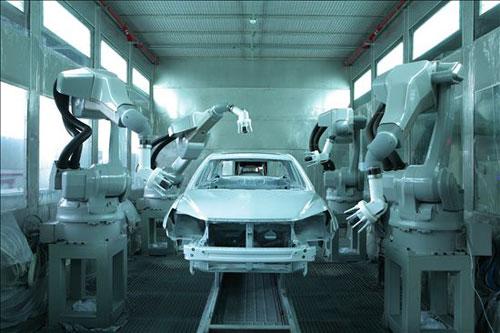 涂裝車間僅從設計理念就能看出它的與眾不同。帝豪積極響應國家“節能減排”號召,將綠色、環保、節能的理念滲入到這個工廠設計的各個環節,尤其在涂裝工藝設備上,采用噴漆采用的是符合環保理念的德國水性涂裝工藝——噴涂機器人和自動調漆、輸漆、噴漆、換色的調輸漆系統,從而保證了漆面的均勻和車身表面的光澤度和鮮映性,涂料利用率也可達98%以上。帝豪EC718/ EC718-RV產品所用的漆是水性漆,非常環保,目前國內只有3至4家合資廠采用,它的溶劑是水,對環境沒有一點污染。