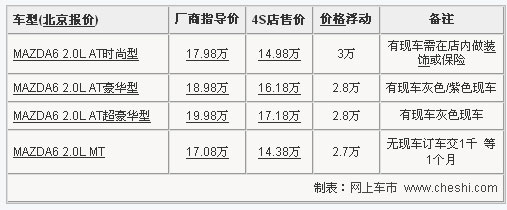隨著新款馬自達6的即將上市銷售,目前銷售的老款車型也出現(xiàn)了較大幅度的松動。據(jù)網(wǎng)上車市價格監(jiān)測系統(tǒng)顯示:目前購買馬自達6的消費者最高可享受到最高3萬元的促銷優(yōu)惠,最低售價已經(jīng)跌破了15萬元關(guān)口,對于一款中級車而言,這樣的價格已經(jīng)貼近A級車的身價了。