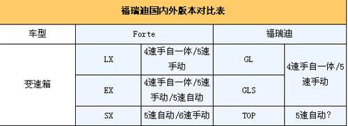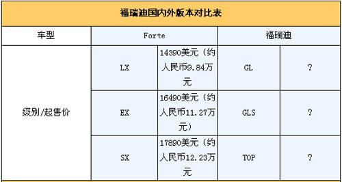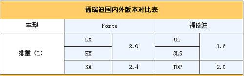 總結(jié):從上面的對比我們發(fā)現(xiàn),F(xiàn)orte國內(nèi)外兩種版本之間的差異還是很大的,其中動力單元差別最顯著,這主要是由國情和消費能力所決定的。目前國內(nèi)市場上小排量車型大行其道,尤其是1.6L車型更是炙手可熱,福瑞迪今后的重點也將會落在1.6L車型上,至于2.0L車型更多的將擔(dān)負起拉升品牌形象的重任。具體價格車型配置等信息,我們將在上市第一時間為你詳細報道,敬請大家關(guān)注!