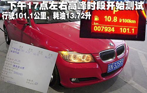北京的晚高峰時段擁堵情況相信是車主們眾所周知的,因此我們選擇在這個時段去模擬油耗測試也是為了向大家展現這款車型在類似工況下的油耗情況。經過測試記者所駕駛的新BMW 325i轎車在行駛了101.1公里后耗費燃油13.72升,平均百公里油耗為13.57升。