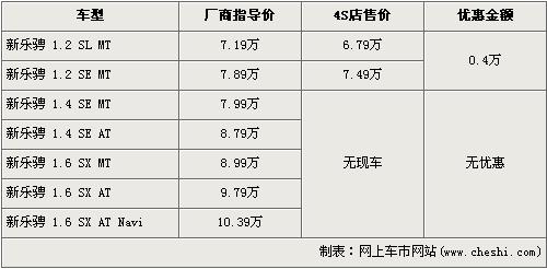 據北京雪佛蘭經銷店銷售人員介紹,雪佛蘭新樂騁分為1.2L、1.4L、1.6L三種排量,售價區間為7.19萬元-10.39萬元。近期購買新樂騁只能夠買1.2L排量的車型,并且購買新樂騁的消費者可以得到現金4000元的優惠,但是現車比較緊張,數量較少。1.4L和1.6L排量均沒有現車,所以不再此次優惠的隊列中。