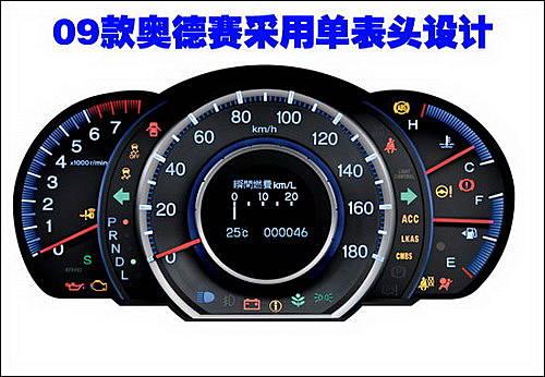 09款奧德賽的儀表盤采用了新穎單表盤設計,轉速表、水溫表分列主表盤兩側。這款自發光儀表盤能保證消費者在夜間行駛時,可以清晰的了解愛車狀況。