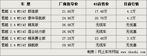 作為一款中級(jí)商務(wù)車(chē),新君越在配置以及空間有一定的特點(diǎn),它裝備了強(qiáng)大的智能中文語(yǔ)音導(dǎo)航系統(tǒng),三音源分控式DVD劇院系統(tǒng)以及方向盤(pán)控制的車(chē)載藍(lán)牙電話系統(tǒng)充分考慮到了商務(wù)人士的乘坐需要。而即將上市的新款君越在外觀上的全系升級(jí)又讓消費(fèi)者重新認(rèn)識(shí)到君越的獨(dú)特魅力。目前,筆者從別克經(jīng)銷(xiāo)商處了解,新款君越已經(jīng)開(kāi)始接受預(yù)訂,老款優(yōu)惠增加,具體行情如下: