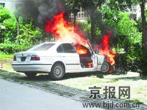 昨天中午12時許,烈日炎炎下,通州區(qū)西露園小區(qū)里的一輛寶馬轎車突然躥出了火苗,經(jīng)過通州區(qū)新華街消防中隊10分鐘的撲救,大火終于被撲滅。