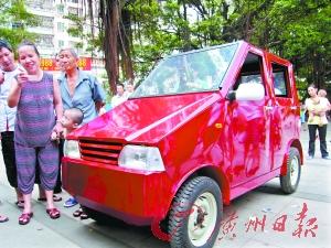 “做這玩意兒主要出于愛好。”留著淺平頭的湖北黃石人彭易然坦然而得意地告訴記者,7年來一直在東莞長安霄邊從事送水、送氣的他,很想擁有一輛自己的轎車,但是高昂的車價使得他望洋興嘆。于是在去年9月,僅有小學學歷的他突發(fā)奇想“自己做一輛”。