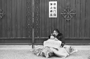 昨日一早,東城區張自忠路附近的北京市交通執法總隊第一隊門口,韓麗敏抱著一歲半的兒子舉牌要求執法隊幫忙尋找失蹤多日的丈夫,或者返還被暫扣的車輛,她要變賣尋夫。
