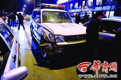 昨日下午5時30分,高新四路通往西大桃園校區(qū)的路上,一輛制式警車20米內(nèi)連撞4輛轎車。不少目擊者懷疑司機喝了酒。