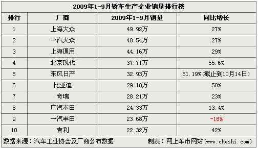 近日,來自汽車工業協會的數據顯示,今年1-9月,乘用車累計銷量超過720萬輛,比去年全年凈增48.59萬輛,同比增長超過40%,創歷年最高。轎車生產企業銷量排行前十位的廠商,都獲得了大幅增長當然不包括一汽豐田,它比較意外的出現了負增長,同比下滑了16%,是銷量排行前十位的廠商中唯一下滑的車廠(詳見下表)。