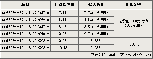 目前普通版新愛麗舍的部分車型采用了包牌銷售的方式,其中包括標準手動型、新愛麗舍標準自動型、新愛麗舍舒適手動型、新愛麗舍舒適自動型。只要購買其中任意一款車型。而另外兩款1.6豪華版并未在此次活動范圍內,但購車可以優惠現金4000元。