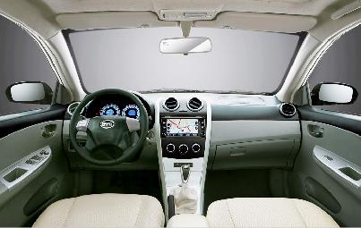 比亞迪G3的車內給人的第一印象更多的是與豐田卡羅拉相似的內飾風格。它突起式的中控臺,采用了與卡羅拉一樣的銀色邊線和灰色面板搭配。而空調面板也與卡羅拉的手動空調的V型旋鈕布局相近,包括相同的安全帶提醒顯示和煙灰缸蓋板,加上一體化設計音響面板,使得整體內飾設計更加典雅大方。